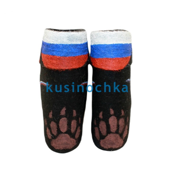 на задней части (пятках) — отпечаток медвежьей лапы, как символ следа, присутствия, связи с землёй.